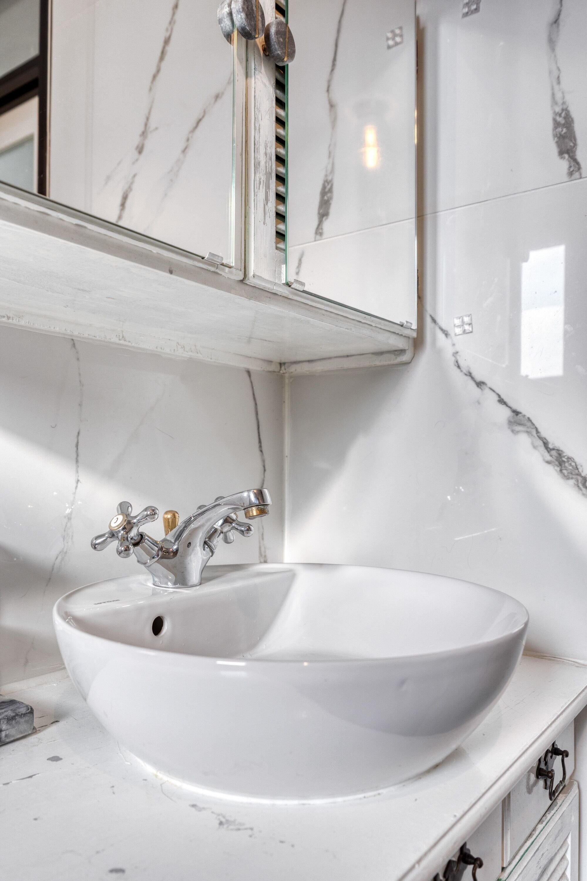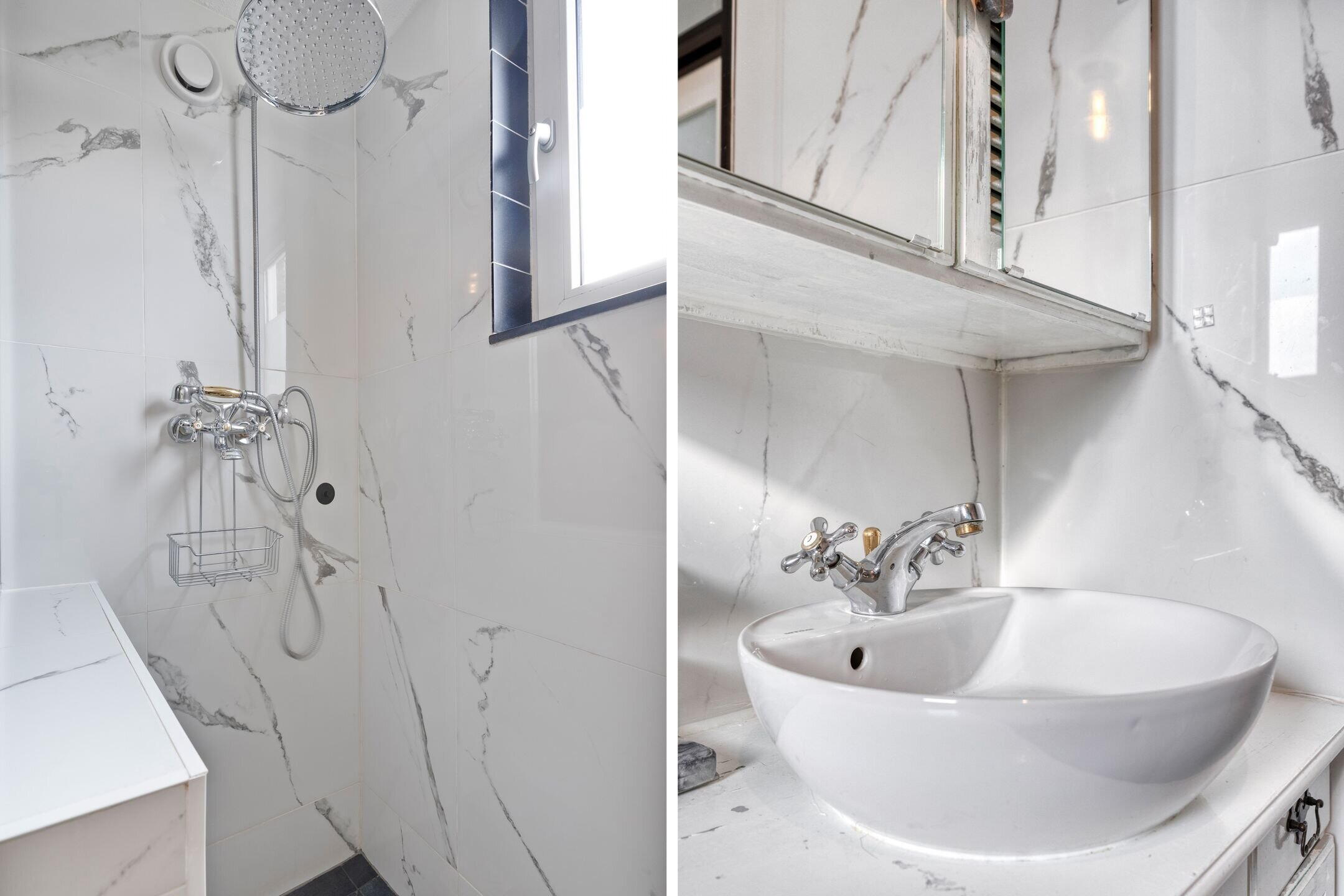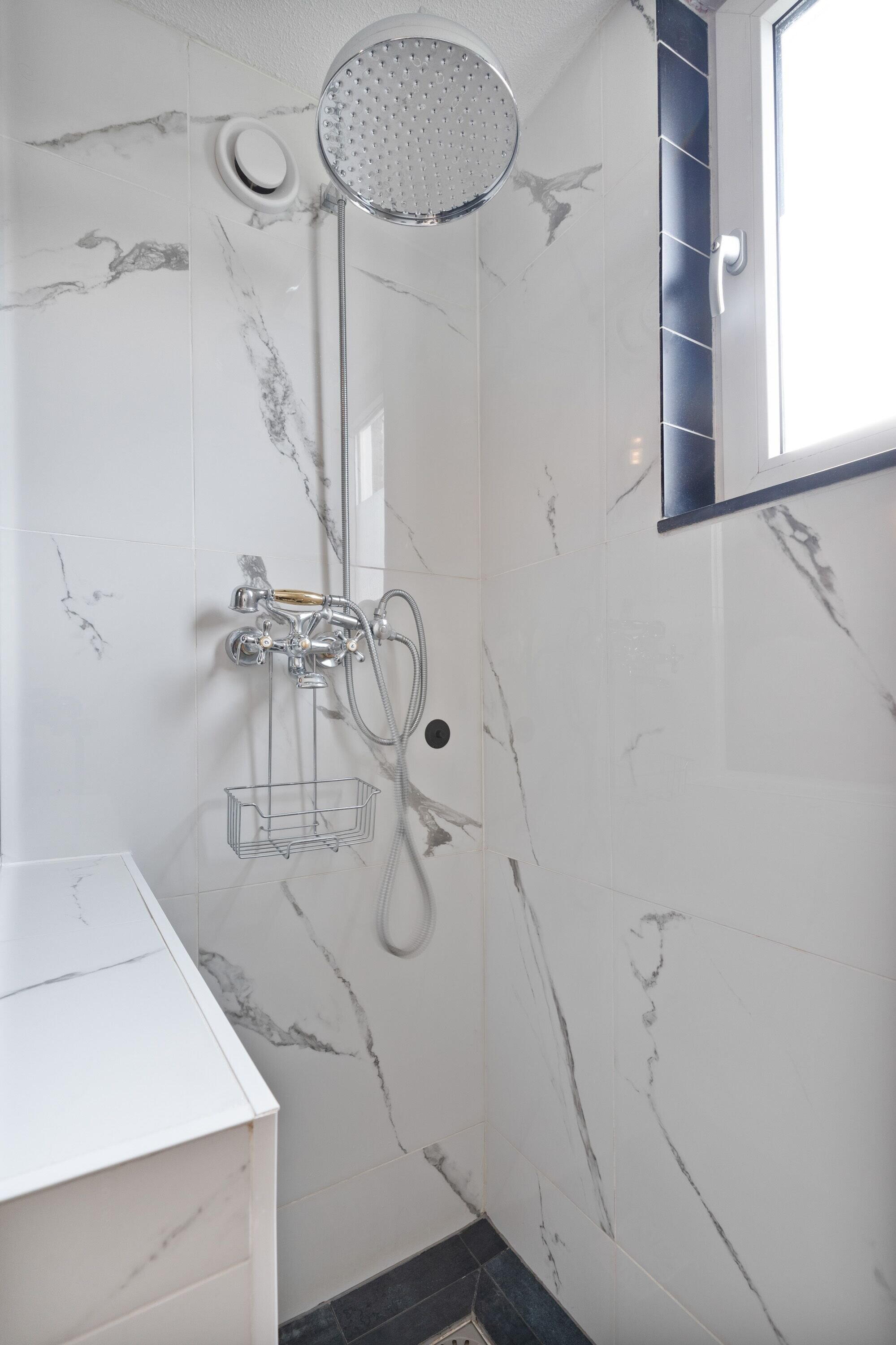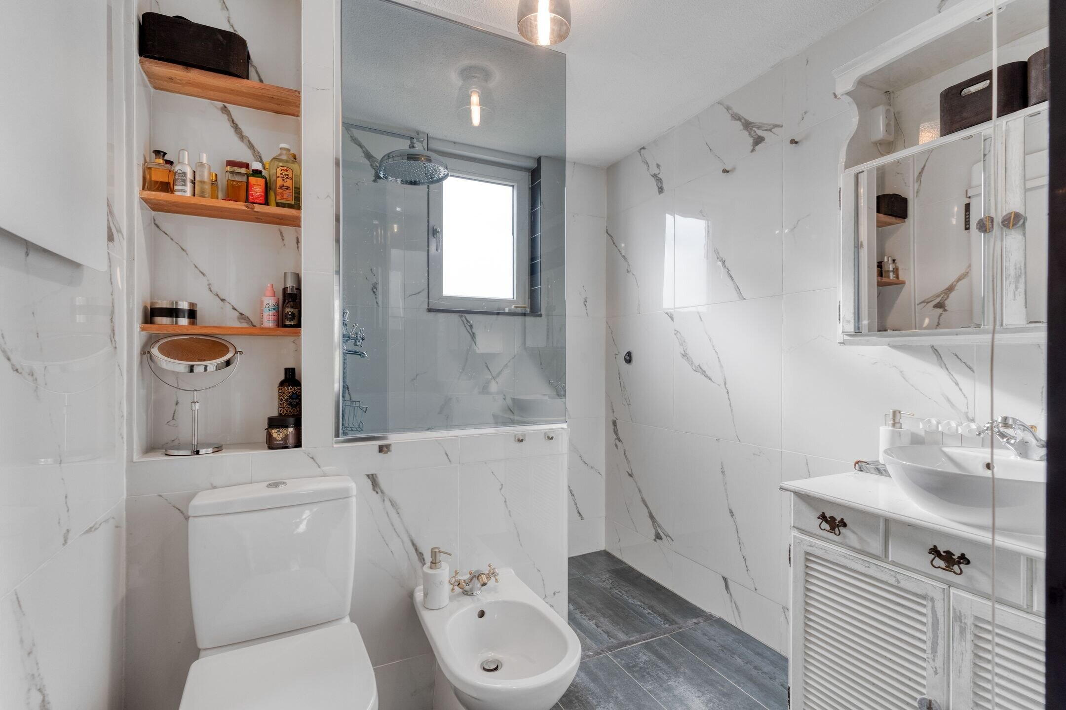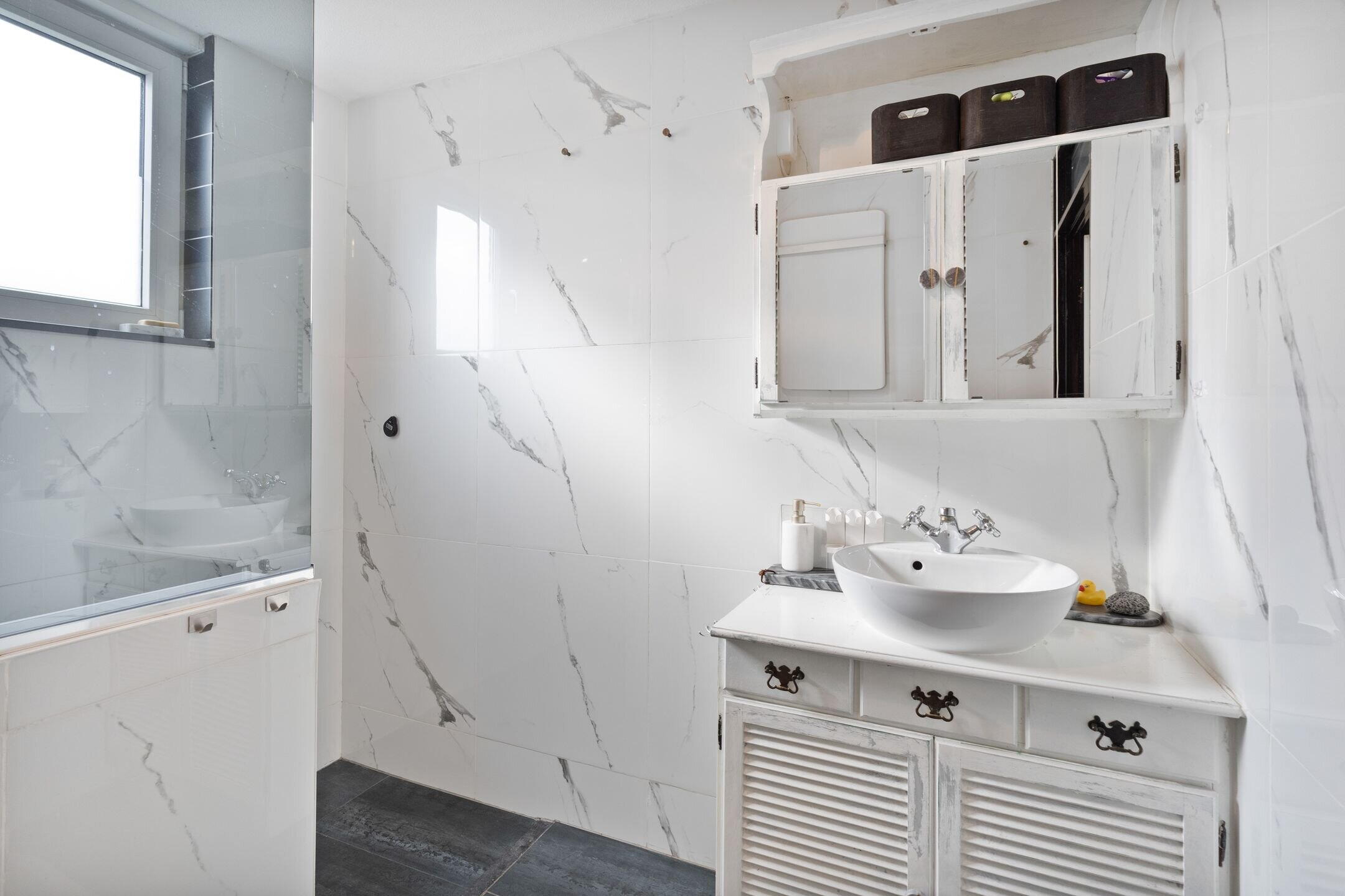 - Bidet, inloopdouche, toilet, wastafel, en wastafelmeubel
